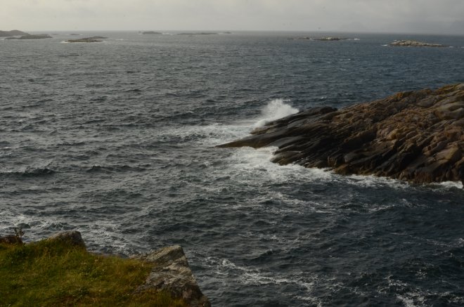 Før jeg har fått valgt om jeg vil høre lydverket på norsk eller engelsk ser jeg journalister og kunstskribenter valse rundt på den store fotballbanen som er, akkurat slik det står i festivalkatologen vi har fått utdelt, omgitt av klipper, hav og fiskehjeller.