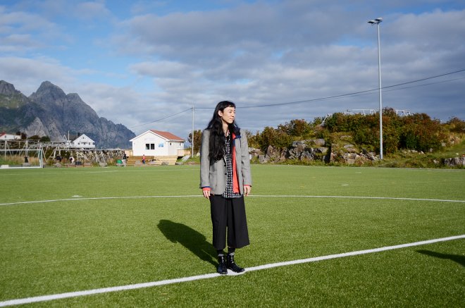 – Denne banen ble stedet for perfomancen fordi jeg har en interesse for lover. Og lover følger i mange tilfeller en ulogisk natur, som noen om fiskeri og fiskerettigheter her i Lofoten. Når jeg så fotballbanen ble jeg interessert i å skape en situasjon hvor disse ulogiske bevegelsene kunne bli presentert som en koreografi, sier Kosugi.