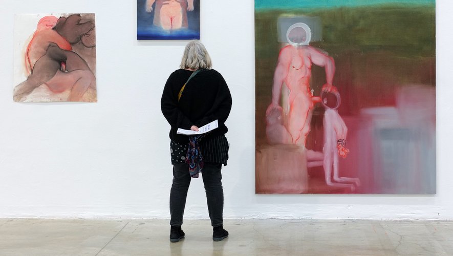 Den sveitsiske kunstneren Miriam Cahns maleri «Fuck abstraction!» ble dekket av lilla spraymaling søndag. Maleriet sto utstilt i Palais de Tokyo i Paris.