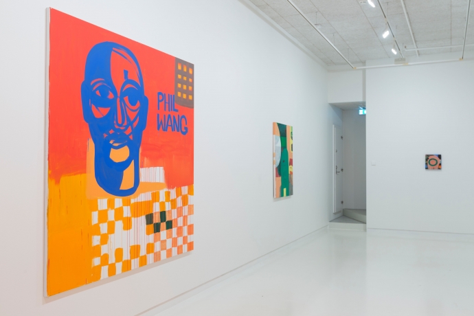 Fadlabi har allerede forlatt lokalet, og vi står foran et av de mer fargerike arbeidene hans. «Phil Wang», står det skrevet med store bokstaver, ved siden av et fjes som virker å forestille nettopp Phil Wang, en britisk-malaysisk komiker.