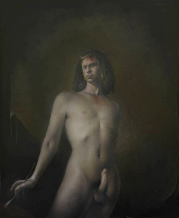 Eplekjekk: Memorosa-gruppen består av Nerdrum-skolerte malere med tidvis evne til å overvurdere egen kapasitet, skriver Subjekts anmelder: – William Heimdal har konsentrert seg om å male en flott penis, men hodet virker malplassert, den gjørmete umbrafargen svekker bildets definisjoner og selv penisen virker å være limt inn fra Odd Nerdrums lignende selvportrett. (Foto: Memorosa-gruppen.)