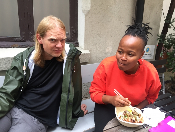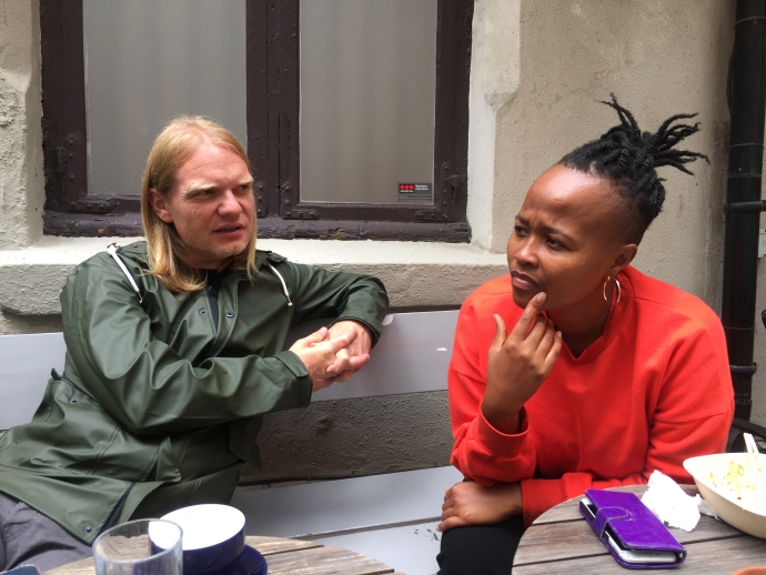 – Bare følelser! Å møte min følelses-compatriot er jo helt fantastisk, sier Nosizwe og ser på Tjore. Det er tydelig at de to har funnet noe å sammen enes om i musikkprosjektet.