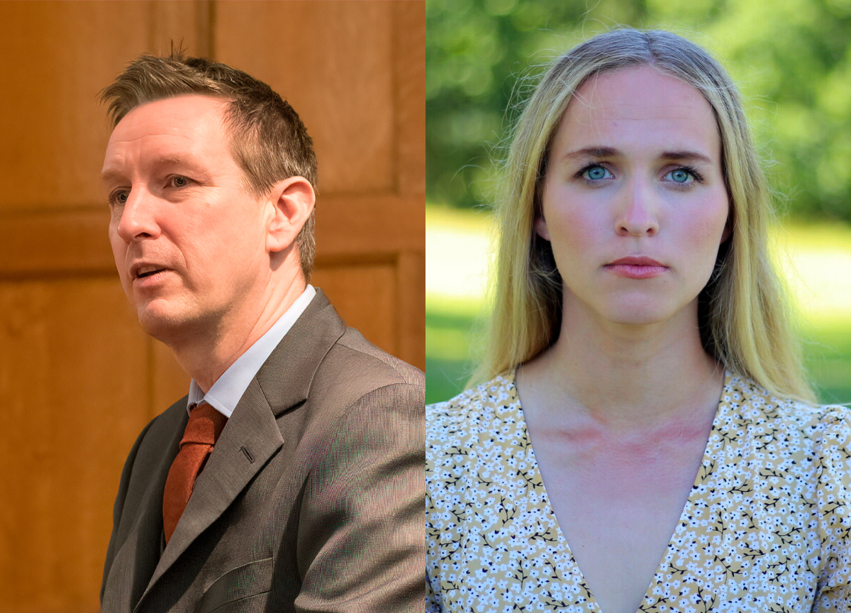 Leder i Unge Venstre, Ane Breivik, og nobelinstituttets Asle Toje er i tottene på hverandre. Breivik mener Toje snakker usant om at hun har forsøkt å kansellere ham. Toje ser det på en litt annen måte. (Foto: Wikimedia Commons/Magnus Hundvin. Kollasj: Subjekt.)
