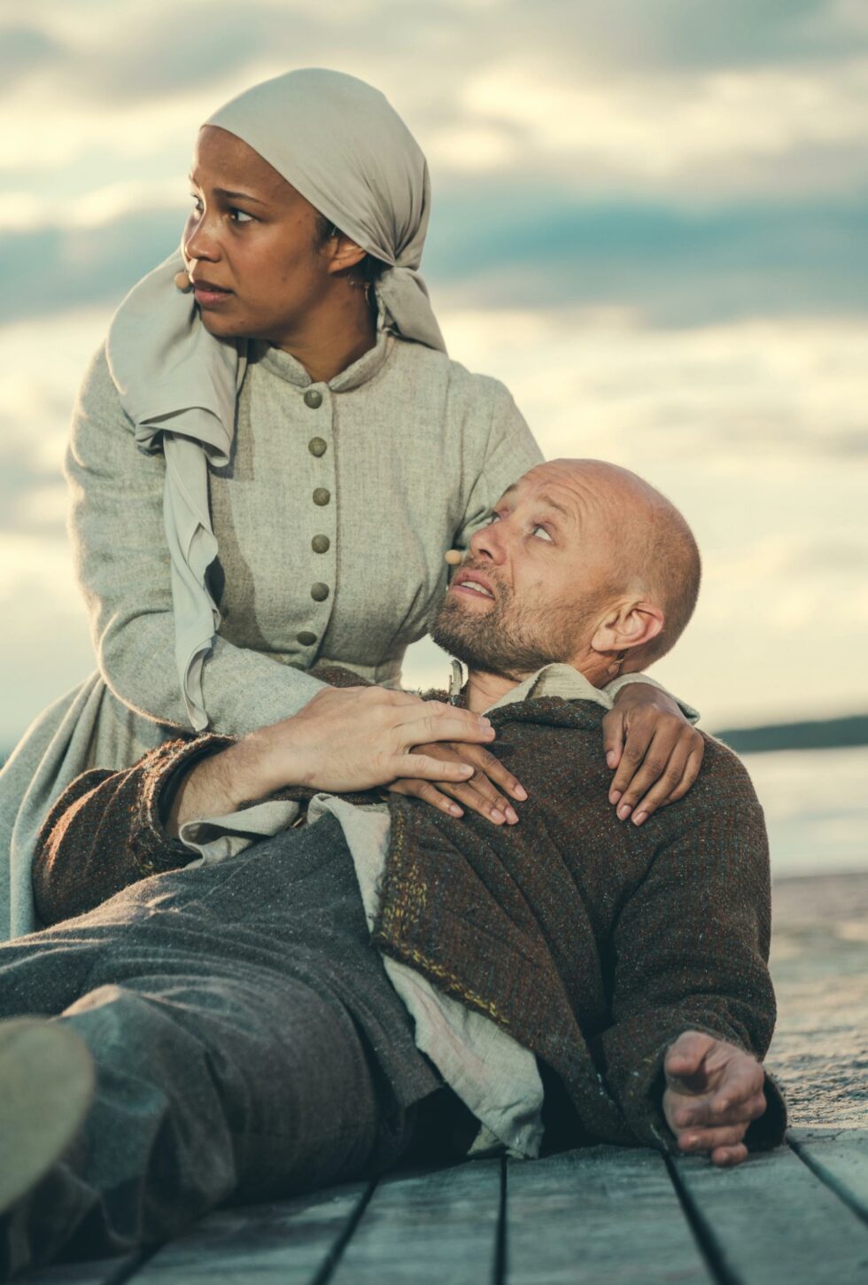 Mimmi Tamba og Aksel Hennie som Solveig og Peer i årets Peer Gynt-oppsetning på Gålå. (Foto: Bård Gundersen.)