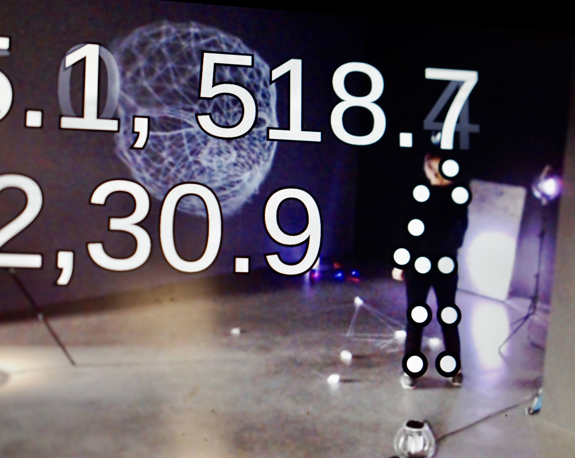 Mads Høbye har skapt en interaktiv utstilling med teknologi som reagerer på de besøkendes minste bevegelse. Det er avgjørende for verkenes uttrykk. (Foto: Mads Høbye.)