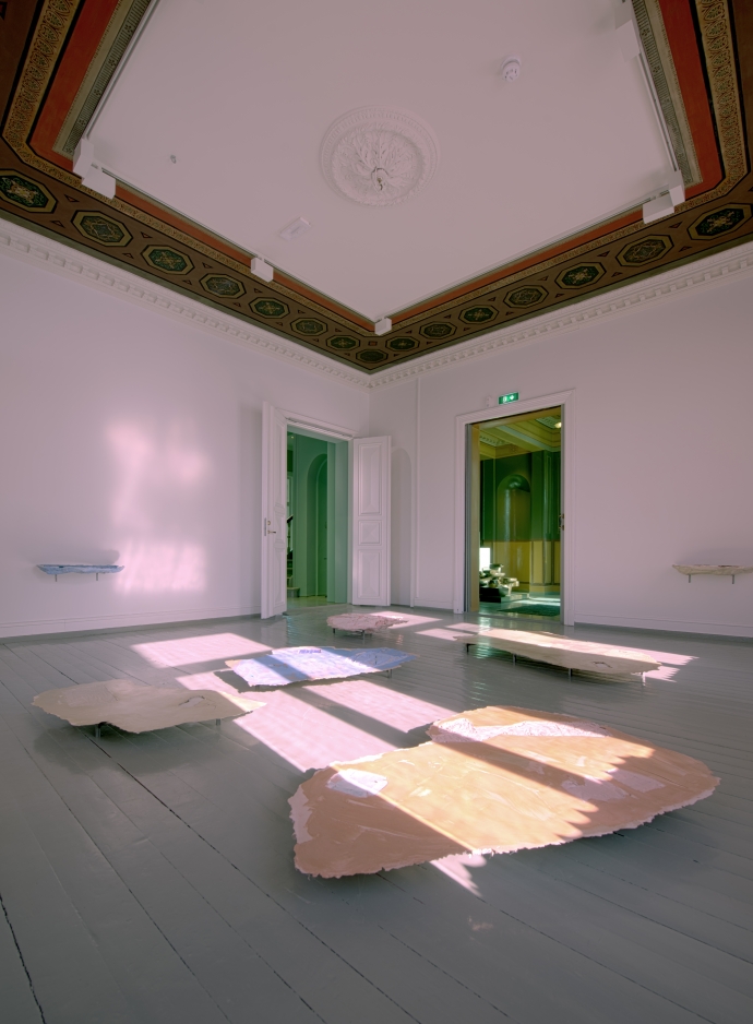 Ved første øyekast kan de minne om store fragmenter av topografiske kart, men når man beveger blikket nærmere, fremtrer verkenes forhøyninger og fordypninger for det de er: Avstøpninger av dagligdagse gjenstander. Disse trer frem i varierende grad, noen mer tydelig, som sovemasken fra «Green Earth Eye Mask», mens andre holdes mer tvetydige og teksturelle.