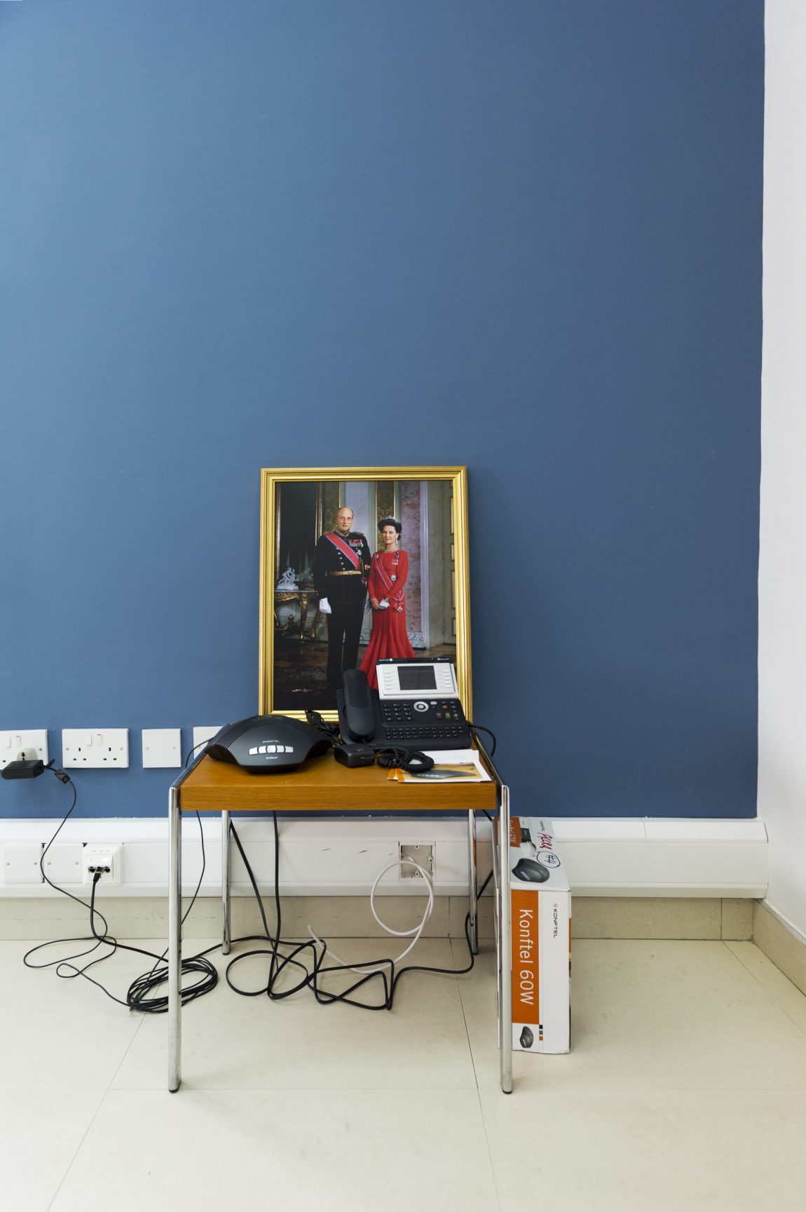 Høyland har fotografert åtte ulike lokasjoner med kongebilder, fra kong Haakon til kronprins Haakon, fra 90-talls ukeblader til falmede portretter. Med en god sans for farger og et konsept som med glimt i øyet påpeker et noe forunderlig nasjonalt fenomen, er det et fornøyelig bidrag til utstillingen.