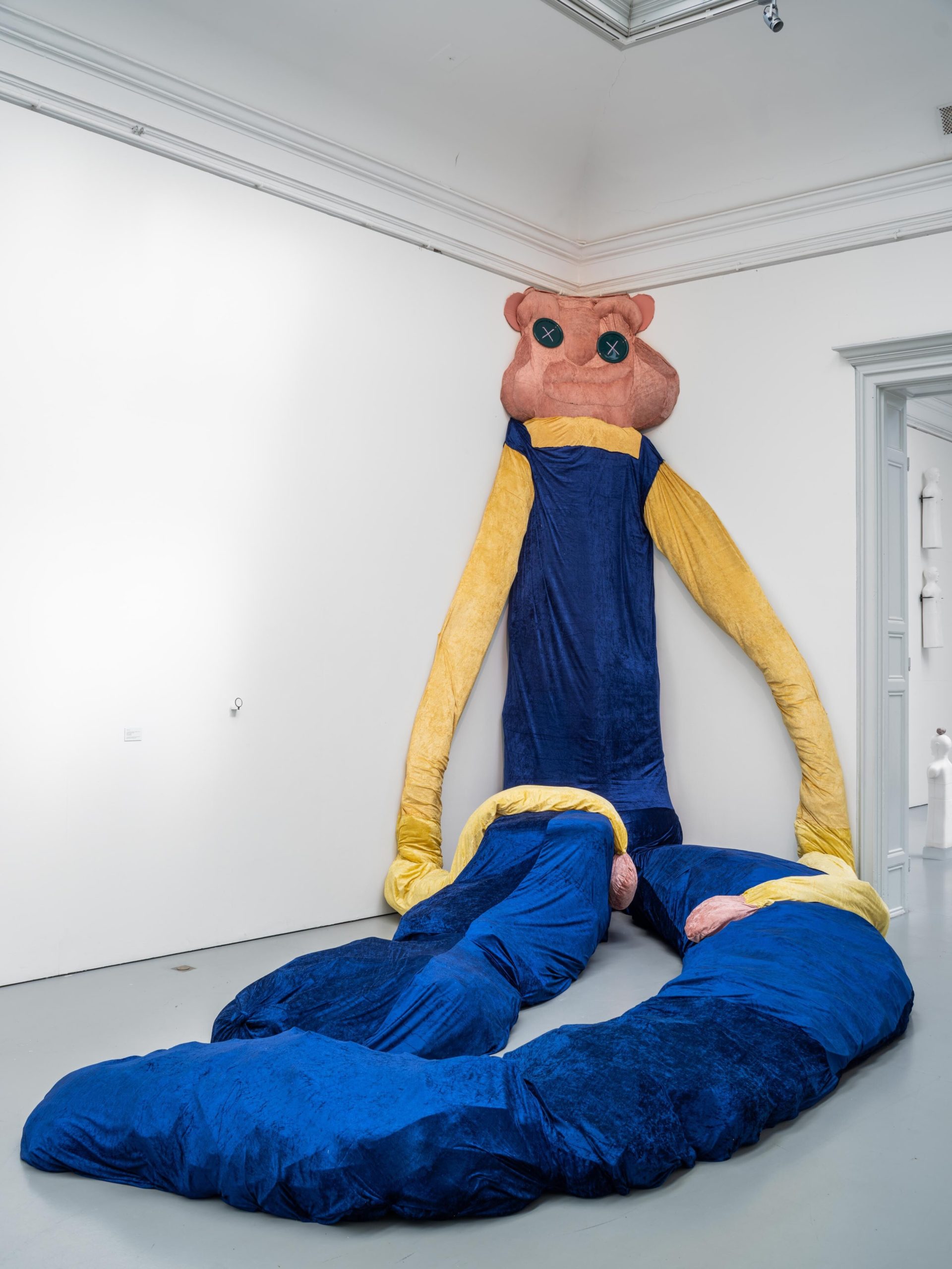 Ikke et rekordforsøk: Vida Lavén har skapt verdens nest største bamse og plassert den ved siden av verdens nest minste bamse på Trondheim kunstmuseum. (Foto: Jean-Baptiste Beranger.)