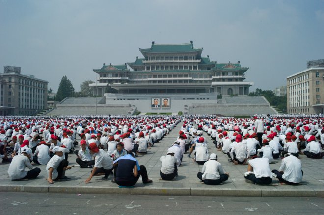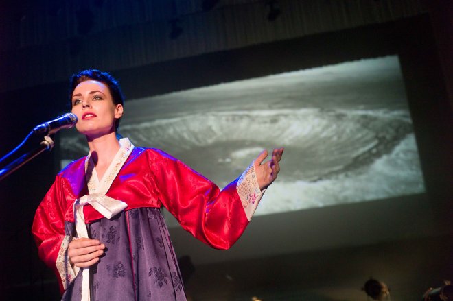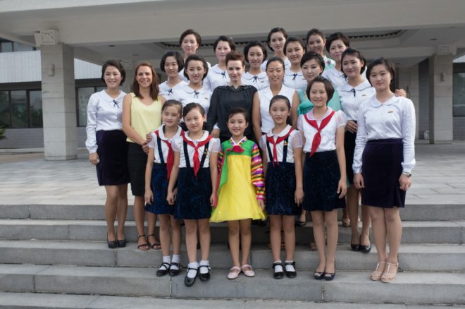 Morten Traavik feiret 17. mai i Pyongyang med norske kunstnere og musikere i bunad. Nasjonaldagen ble også feiret med en konsert og en fotoutstilling fra Norge, 17. mai 2012. (Foto: Traavik.Info.)