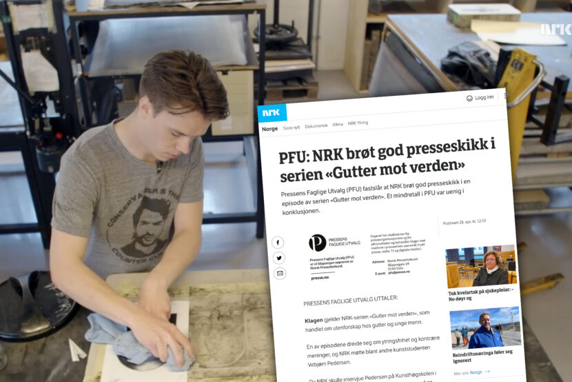 I NRK-serien «Gutter mot verden» møter vi Vebjørn Pedersen og aktivistene som vil ha ham kansellert. I en av scenene går aktivistene aktivt inn for å hindre NRK i å intervjue Pedersen, altså forsøker de å hindre NRK i å gjøre sitt samfunnsoppdrag. Likevel evner NRK å bli felt i PFU for sin dekning av saken. Hvordan i all verden greide de det? (Foto: Presse/skjermdump.)