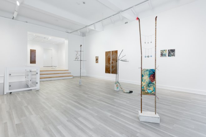 – I det siste har jeg arbeidet med en teknikk hvor jeg legger materialer i et saltvann og eddik-bad i flere uker, til vannet fordamper, da lager kunstverkene seg selv, nærmest, og jeg kan bare møte opp på atelieret hver dag og bli overrasket over det som har blitt skapt.