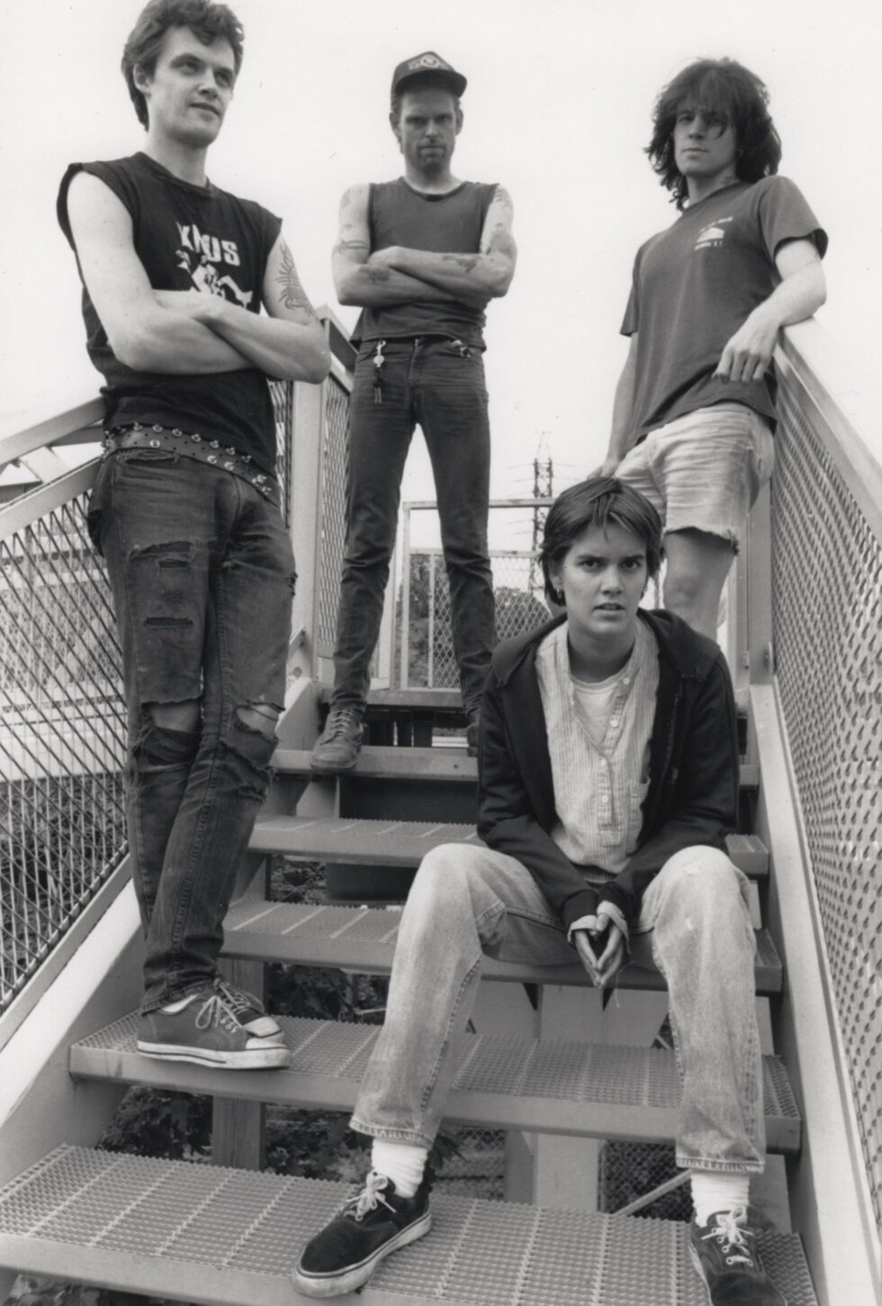 Life... But How To Live It? i 1990. Fra venstre: Tor (bass), Dyret (trommer), Roger (gitar). Foran: Katja (vokal). (Foto: Håvard Houen.)