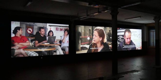 Utstillingen “Occupy, Resist, Produce” består av tre filmer på okkuperte fabrikker i Milano, Roma og Thessaloniki. Hver film er basert på samtaler med arbeiderne, på fabrikkene hvor arbeiderne fant måter å organisere arbeidet under sin egen kontroll. Filmene fokuserer på de sjeldne og bedre organiserte tilfellene av okkupasjon der formålet med kampen er å bringe produksjonen under kontroll av arbeiderne.