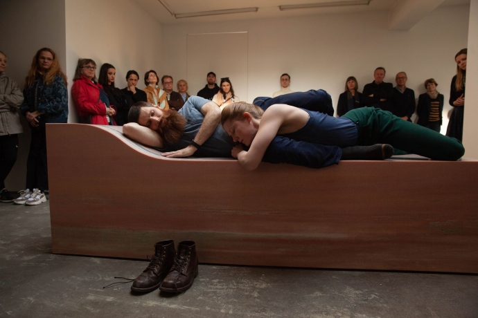På den siste dagen av utstillingen «Seng og Sekund» av A K Dolven på OSL Contemporary, ble samtidsdanseren Tale Dolven invitert til å fremføre en performance. Det hele viste seg å bli et vakkert samspill mellom flere elementer som utstillingen artikulerer: En abstraksjon av tid, en kroppslig tilstedeværelse og en relasjonell nærhet.