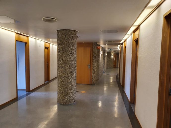 Hun forteller at de fikk gå rundt i hele bygget, men at de var strengt bevoktet.