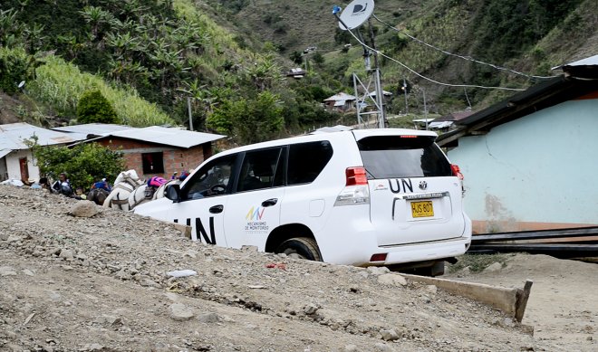 SOLEN STEKER. Det er formiddag, og vi befinner oss på baksetet av to motorsykler på en grusvei, seks timer inn i Andesfjellene fra nærmeste storby. På vei inn til landsbyen Santa Lucia har vi blitt stoppet av en FN-kontrollpost.