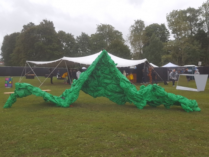 «As the Family came to town (2017-2018)» av John Lundell består av fire skulpturelle uttrykk i tre som utforsker forbindelsen mellom mennesket og naturen. I likhet med mennesker kan også trær få sår og arr, som forvitres eller endres med tid, vær og vind. Denne parallellen mellom mennesket og treverket er vakkert visualisert i «As the Family came to town». Skulpturene får fortelle sin egen historie i dialog med hverandre, og publikum. De organiske formene er innbydende og skaper en fin dynamikk i festivalrommet.