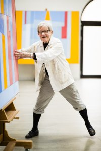 Mer presist 65 år. Kunstneren Irma Salo Jæger har levd 65 år lengre enn meg, og når vi nå sitter sammen i hennes atelier på Lilleborg i Oslo er hun ivrig etter å høre hva den yngre generasjon synes om maleri, om sanseopplevelser og om å konsumere kunst gjennom en skjerm.