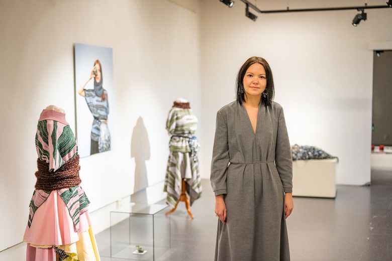 Selv om hun er mest kjent som klesdesigner, jobber hun hele tiden i grenselandet mellom klær og kunst, hvor estetikken er dypt forankret i tekstilkunsten. På Akershus kunstsenter tidligere i høst, viste hun at arbeidene hennes fungerer like godt inne i gallerirommet, så vel som hengende på kropper, hvor hun også her knyttet tradisjonell samisk kultur opp mot hennes egne assosiasjoner fra barndommen, og på den måten formidlet et mer nyansert og komplekst bilde på hva samisk er.