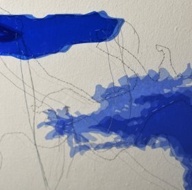 «Olje og vann» er Line Solberg Dolmens første separatutstilling etter endt master fra Kunsthøgskolen i Oslo. Solberg Dolmen arbeider hovedsakelig med tekstile installasjoner som reflekterer ulike problemstillinger, og de siste årene har forflytning og tilknytning stått sentralt i kunstnerskapet hennes. I utstillingen presenterer kunstneren en installasjon som omhandler relasjonen mellom olje og vann. I grafiske fremstillinger av hvordan havet stiger, tegnes både fortid, nåtid og et fremtidsscenario inn i kartet.