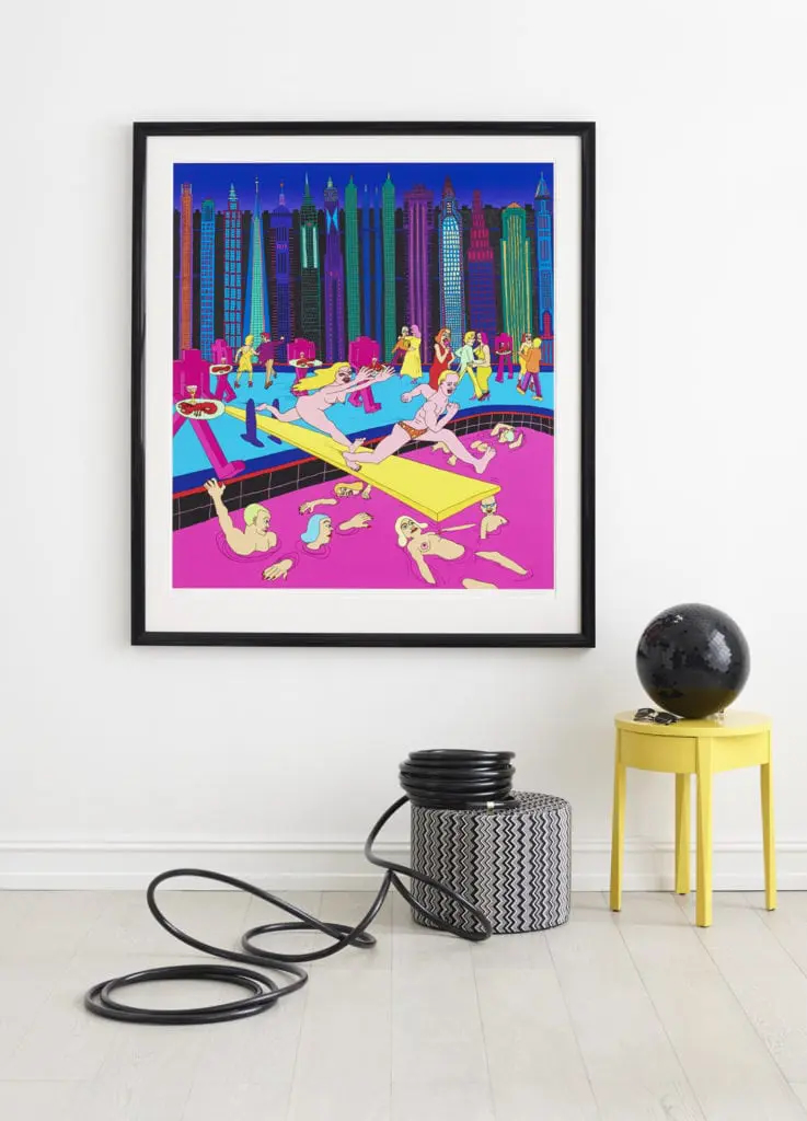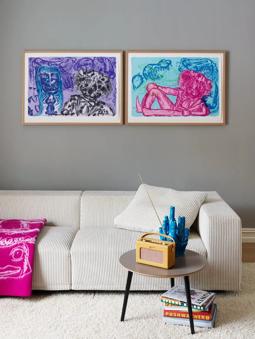 Med et kunstverk av Pushwagner på veggen stiller du deg kritisk til din egen livsstil, med et lekent byks inn i samtidens kritiske tenkning. (Foto: Fineart.)