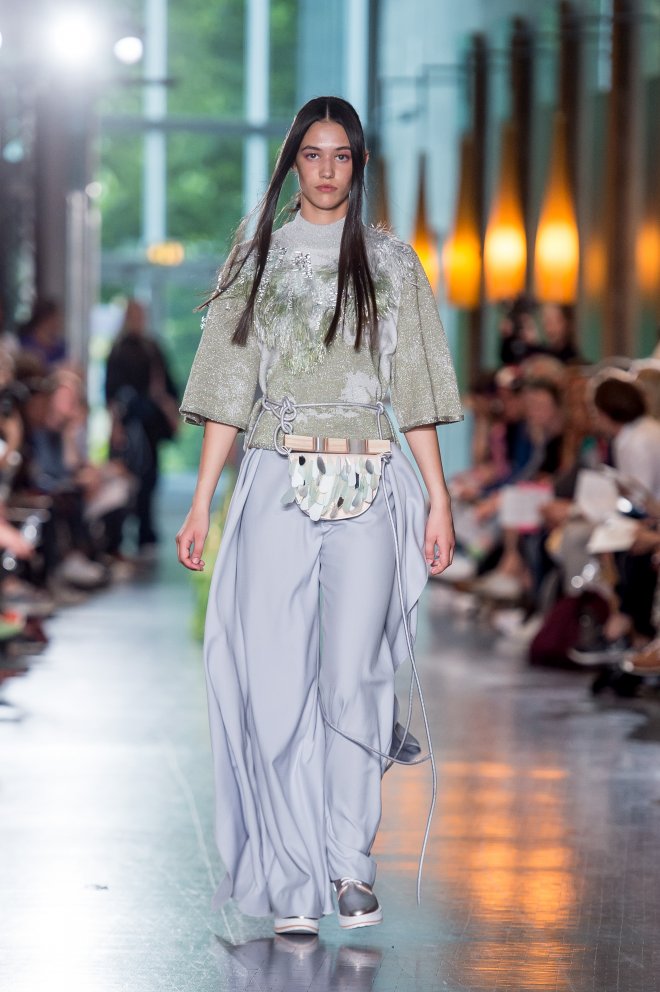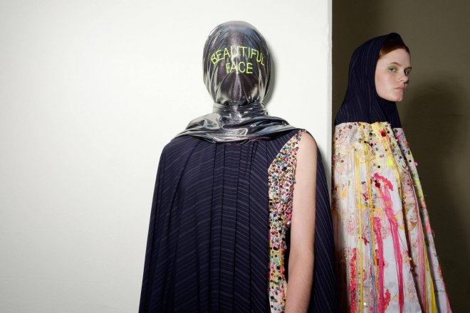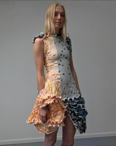 – Designet mitt varierer i utrykket og det visuelle, men jeg liker å kombinere flere kulturer sammen, ettersom jeg selv har vokst opp med å lære mer enn bare en kultur. Kolleksjonen min, som heter “Portraits of Absence”, har et samfunnsrelatert tema, der jeg problematiserer objektiviseringen av kvinner i media både i vest og øst. Hvordan kvinner begge stedene objektiviseres, men på motsatte måter. Jeg tror selv jeg har klart å visualisere temaet mitt på en bra måte, der valg av materialer , bearbeiding av materialer og håndverk, som broderi, har vært en veldig viktig del av prosjektet.