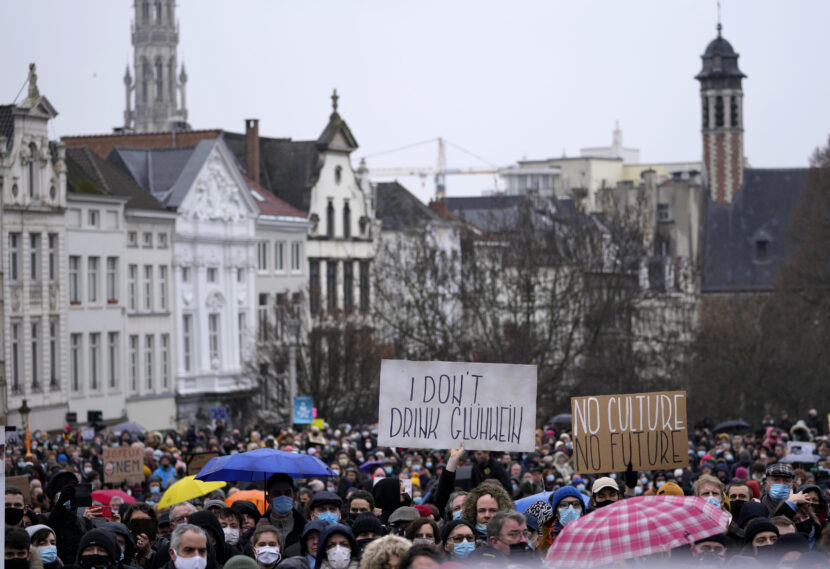 Tusenvis i protest mot stenging av kultursektoren i Belgia