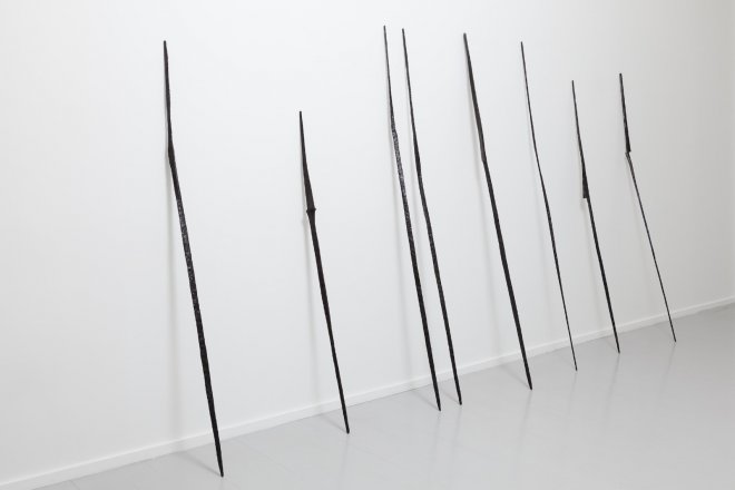 Den anerkjente kunstneren Jan Groth viser tegninger og skulpturer i sin utstilling hos Galleri Riis. Disse ble vist i år på Bergen Kunsthall, hvor Groths tegninger for første gang var tegnet rett på veggen. I denne utstillingen vil tegningene bli tilpasset arkitekturen i Galleri Riis. Skulpturene er i bronse og lener seg mot veggen, i former som likner kropper eller figurer. Presentert som en gruppe kan de ligne gamle verktøy eller våpen.