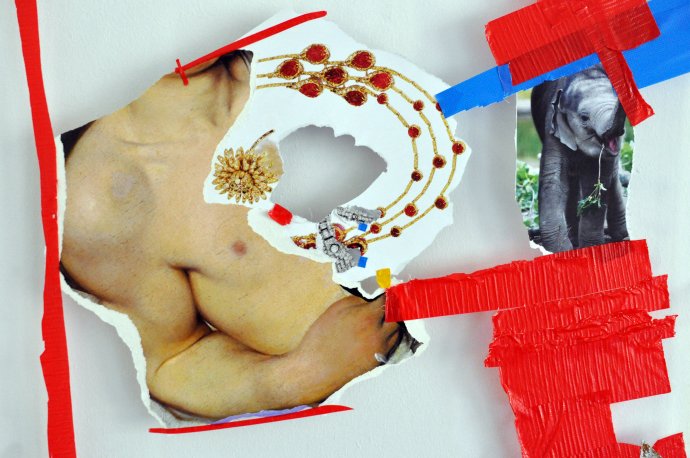 I Kaarsteins fotokollasjer møter populær kulturen dyreriket og kunsthistorien. (Foto: Island Oslo.)