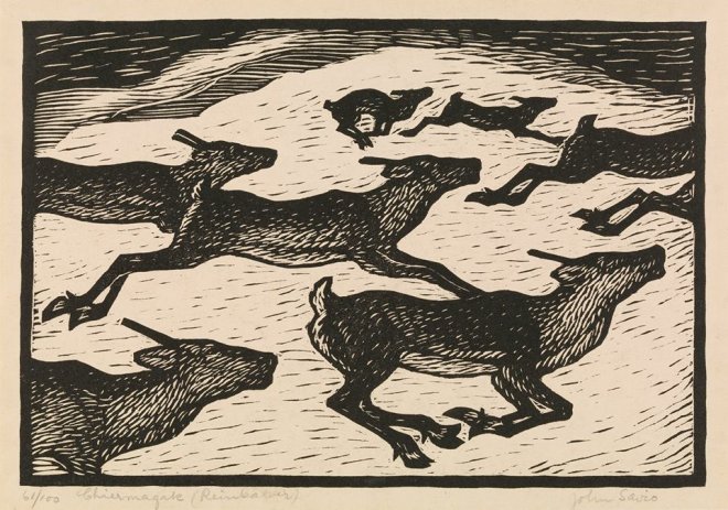 Savios kunst viser en sterk tilknytning til Nord-Norge og den samiske kulturen. Savio er mest kjent for de kontrastfylte tresnittene trykket i svart-hvitt, men han håndkolorerte også flere av trykkene. Rytme og bevegelse karakteriserer uttrykket i mange av bildene hans. Mer info på Facebook HER.