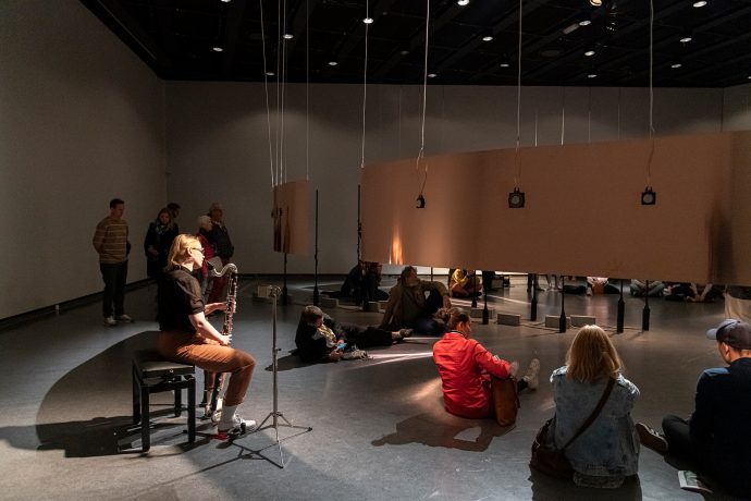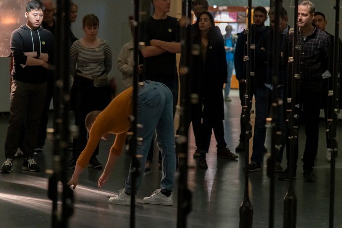 Lydskulpturen og performance-verket «Resonans» (2019) av Gunhild Mathea Olaussen hadde sin verdenspremiere på Henie Onstad kunstsenter denne helgen. Gjennom en rekke fremføringer som fremhevet tekstuelle, visuelle og taktile kvaliteter i et betrakteraktivert lydlandskap skapte hun noe som mange andre kunstnere ofte sliter med: Publikumsengasjement.