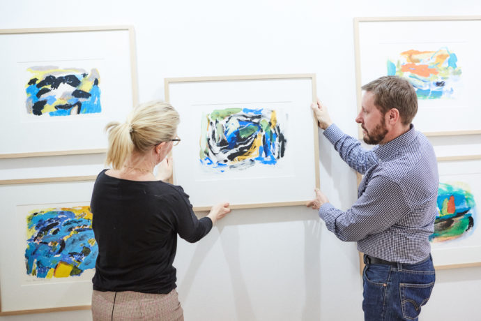 Sammen med Nesjars egen datter, Gro Nesjar Greve, og daglig leder for Kunstsentrene i Norge, Merete Hovdenak, er Morken i full gang med monteringen av utstillingen som skal markere kunstnerens 100-årsjubileum.