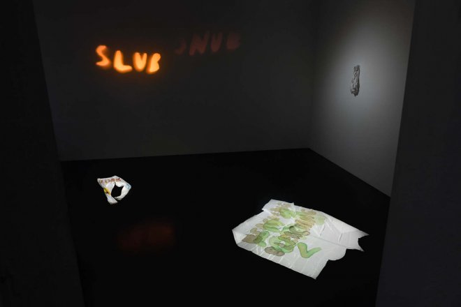 – Jeg krysser også mye mellom dem. Jeg bruker ofte samme tekstmateriale som utgangspunkt i flere verk, performance, maleri, kostyme, lydverk eller lysverk. Materialet og utgangspunktet for mange prosjekter er ofte situasjoner, ord, setninger som fester seg i hjernen og blir som et ekko i hodet. Det kan for eksempel være en overhørt samtale eller en rar e-post.