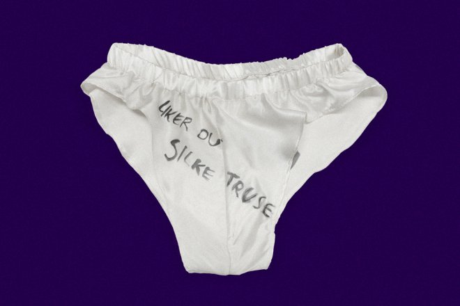 – Ordene og teksten jeg drar ut blir jo tatt ut av en kontekst og satt inn i maleri eller musikk, dermed får de et nytt rom å resonnere, repeteres i, blåses opp i osv. «Liker du silketruse» er et sånt utdrag som jeg har brukt, som jeg ble spurt om en gang jeg kjøpte silke i metervare.