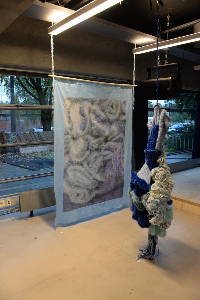 I de strikkede skulpturene viser Hasselblad at hun har gått ut ifra fra kroppen og klesplaggene, og sett på hva som er funksjon og ikke-funksjon. Det er klesplagg uten en bærende kropp.
