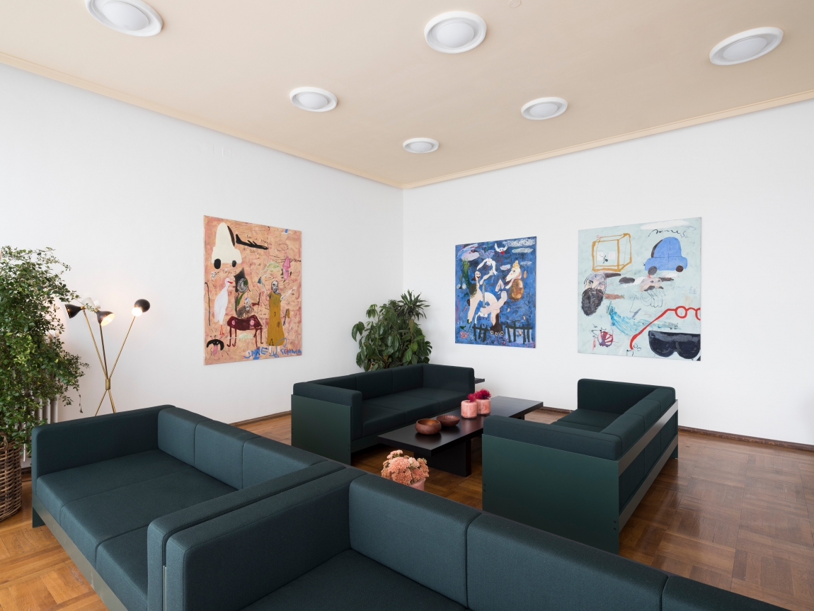 Bygget er tegnet av Bauhaus-eleven Franz Ehrlich, og i et kledelig samarbeid med det anerkjente Berlin-galleriet König, har de fleste rom og vegget blitt prydet med skulpturer og billedkunst.
