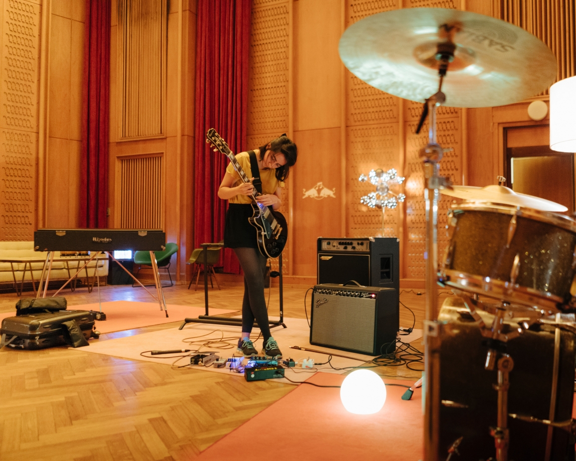 Hun jobber i Red Bull Music Academy-teamet i Berlin, og viser oss rundt i bygget som de for anledningen har tatt over. B-blokka, i Funkhaus-komplekset, med et påfølgende renoveringsarbeid og møblering som de har tenkt å legge igjen for fremtidig bruk av andre.