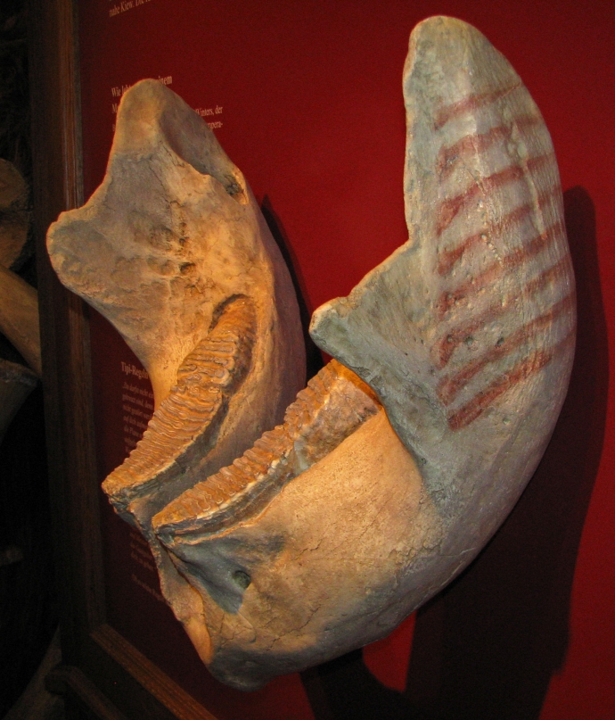 Dette kjevebeinet, av mammut, ble trolig brukt som rytmeinstrument under istiden. Kjevebeinet ble funnet under utgravingen i Mezin i Ukraina på 1950-tallet.