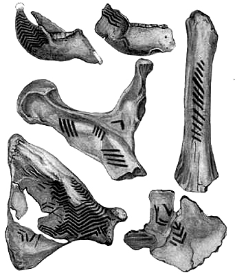 Det var et hoftebein, et skulderblad, et lårbein og to kjevebein, som alle var dekorert med oker, og som hadde tydelige merker etter slag. En interessant ting var at slagmerkene var plassert der beinene hadde best klang.