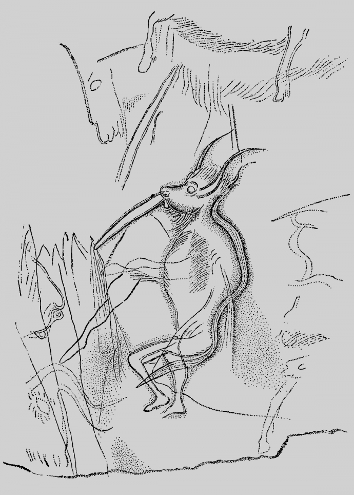 Det er et menneske utkledd som bison, og er blitt tolket som en trollmann eller sjaman. Det kan ha vært en musiker, danser og sjaman som i transe prøver å komme i kontakt med en annen verden.