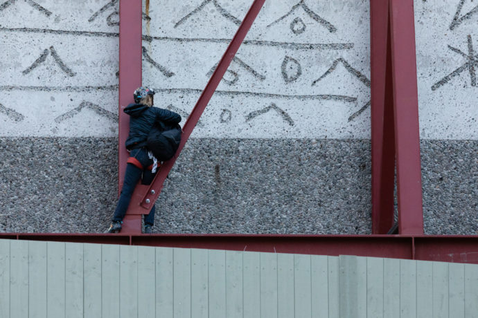 – Vaktene og politiet var raskt på plass, men alt gikk i rolige former. Like etter ble banneret fjernet og dagens riving startet som in ingenting hadde skjedd, sier han til Subjekt.