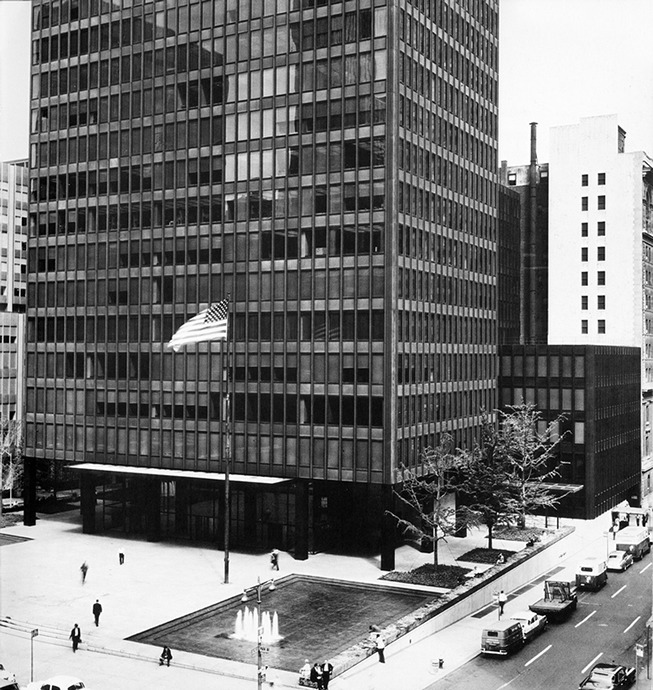 Van der Rohes høye, svarte og blanke kontorblokker – som Federal Center i Chicago og Seagram Building i New York, begge fra 50-tallet – har blitt landemerker i USA. Det er åpenbare fellestrekk med Økernsenteret.